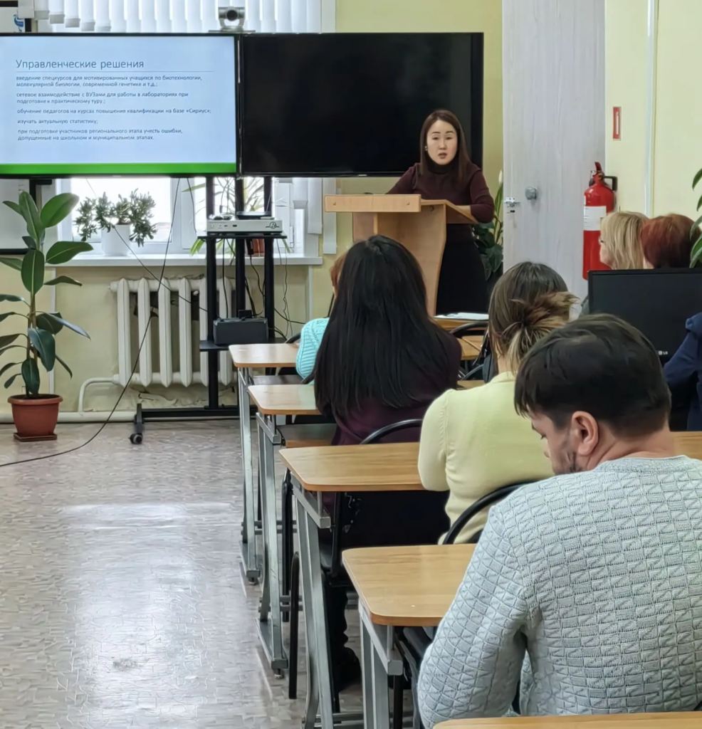 В районном методическом кабинете управления образования администрации Нанайского муниципального района (далее- РМК) в рамках выполнения мероприятий муниципального комплексного плана по повышению качества математического и естественно – научного образования в Нанайском муниципальном районе на период до 2030 года.28 января 2026 года прошло заседание межшкольное методическое объединения учителей биологии, географии, химии по теме “От анализа состояния к определению перспектив в области естественно – научного образования в Нанайском муниципальном районе”. Участники заседания проанализировали 📌 выполнение Комплексного плана по повышению качества образования, 📌  результаты ГИА обучающихся 2025 года, 📌 результаты муниципального этапа Всероссийской олимпиады школьников по предметам биология, география;📌  результаты профессиональной диагностики 2024,2025 годов и наметили пути на 2026 год. С темой самообразования выступила Загородняя Т.Г. учитель биологии,химии МБОУ ООШ с.Верхний Нерген.